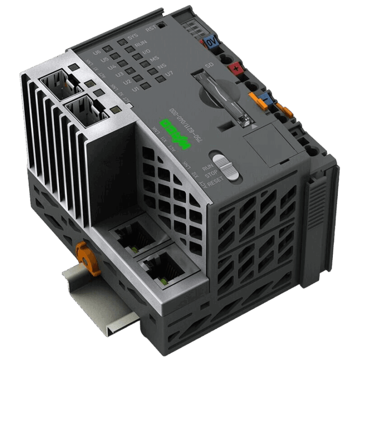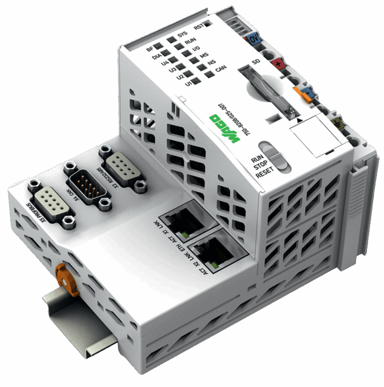 Der Controller PFC200 ist eine kompakte Steuerung an dem modularen WAGO I/O System. Neben den Netzwerk- und Feldbus-Schnittstellen unterstützt er digitale und analoge Module sowie Sondermodule der Serien 750/753.