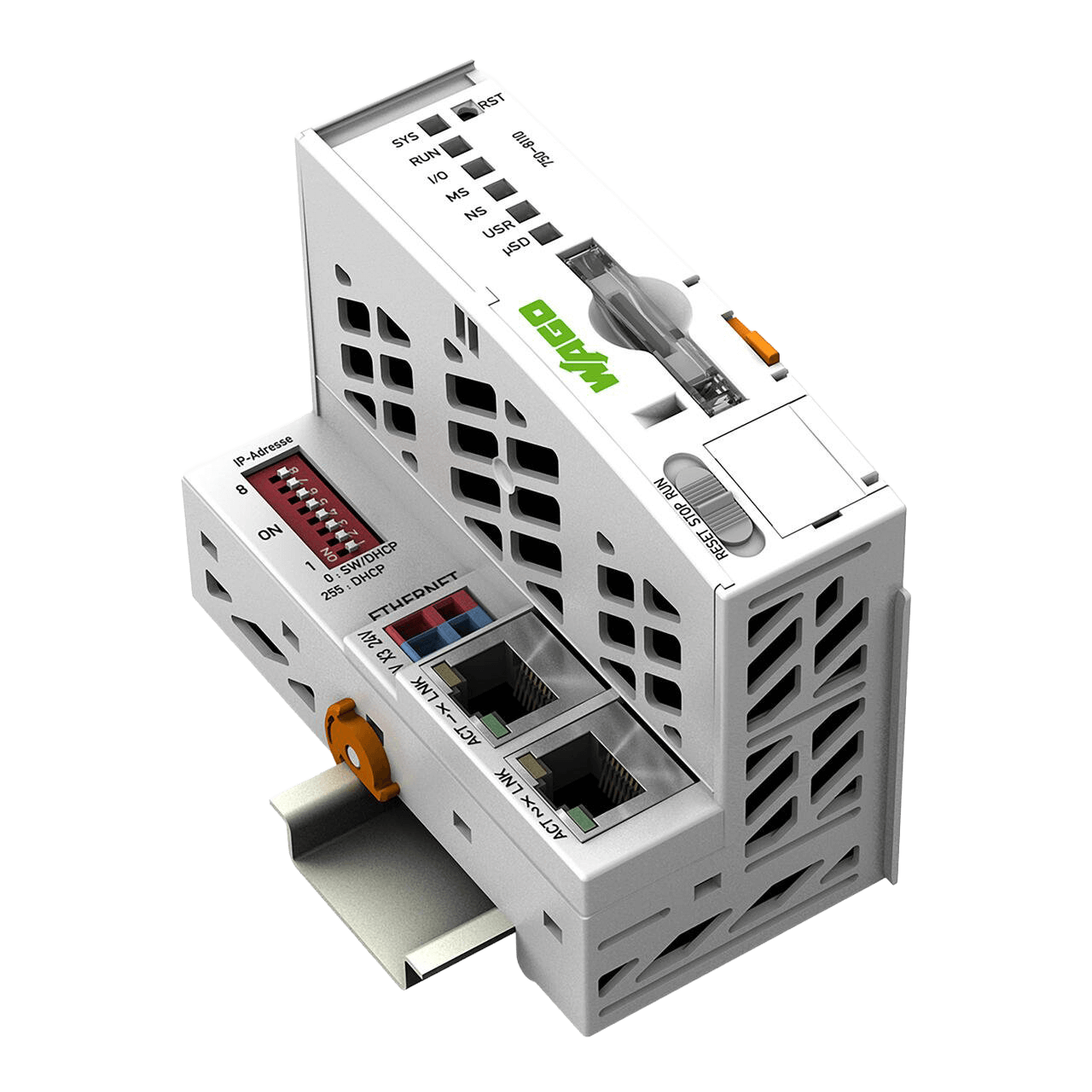 Der Controller PFC200 ist eine kompakte Steuerung an dem modularen WAGO I/O System. Neben den Netzwerk- und Feldbusschnittstellen unterstützt er digitale und analoge Module sowie Sondermodule der Serien 750/753.