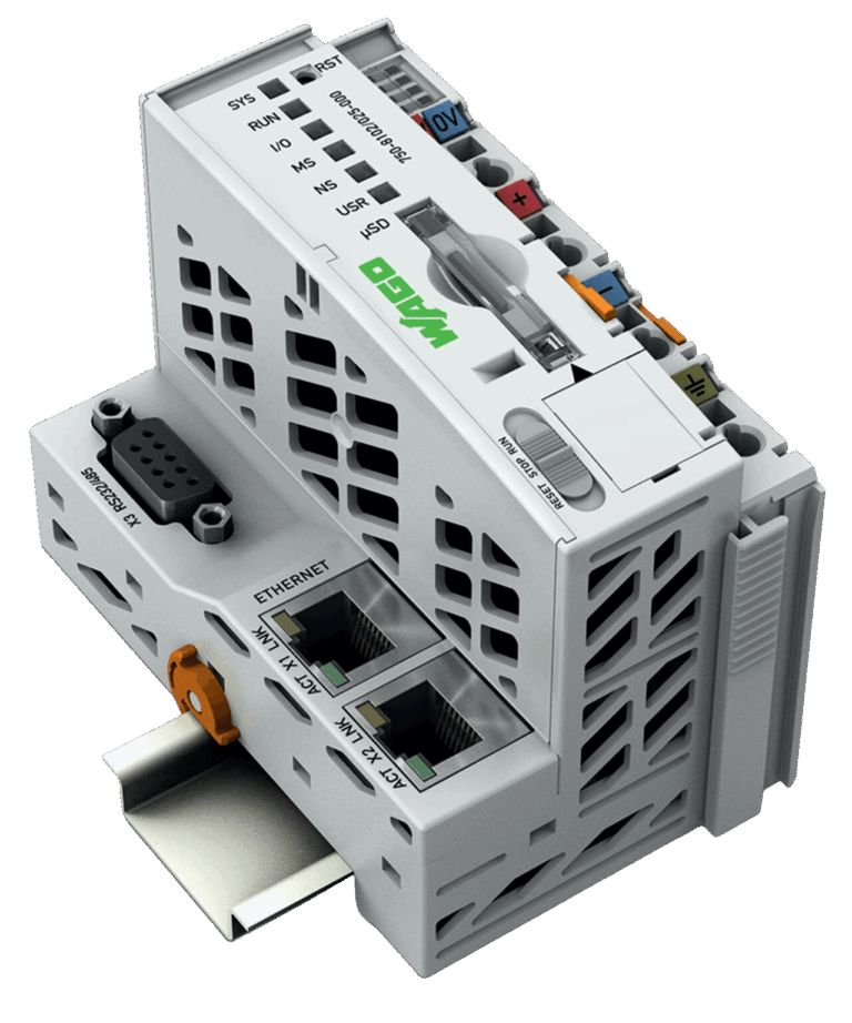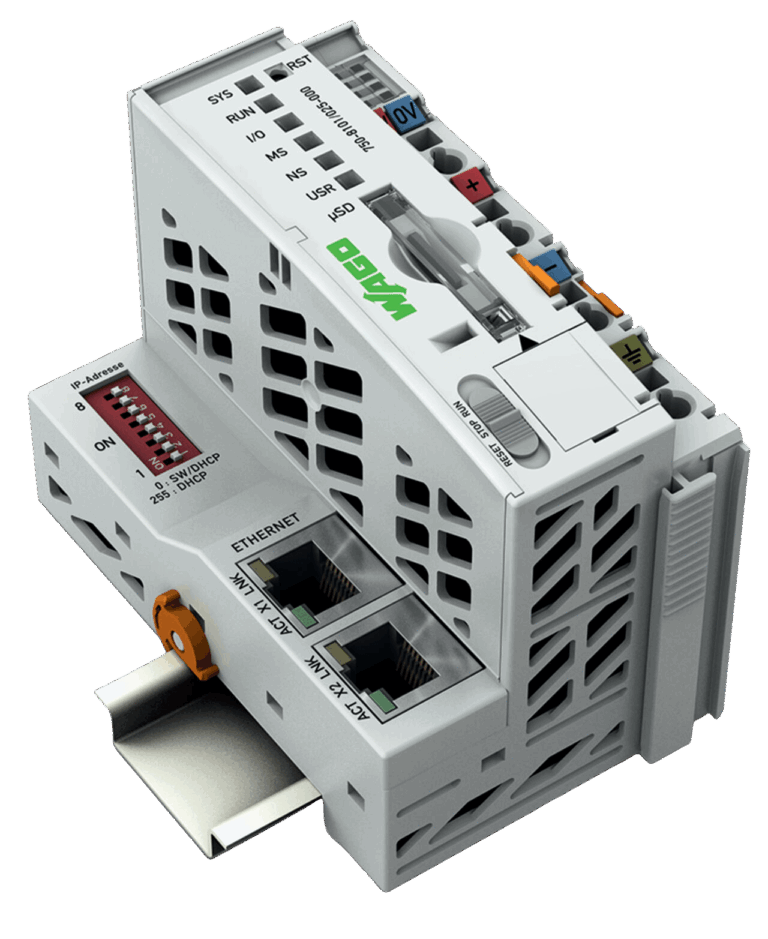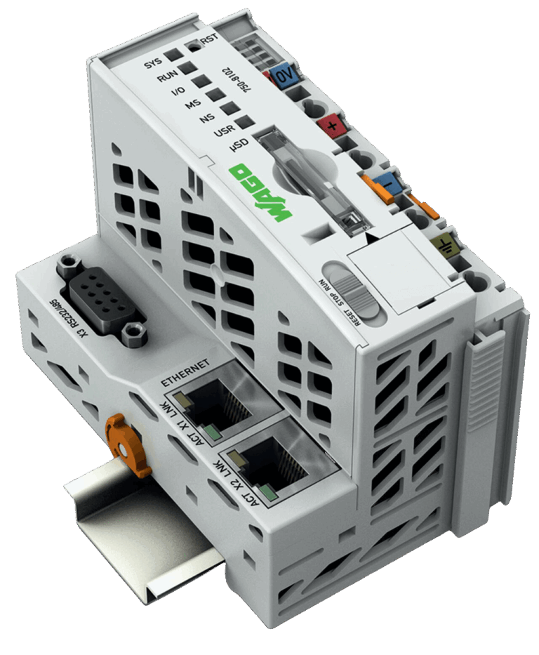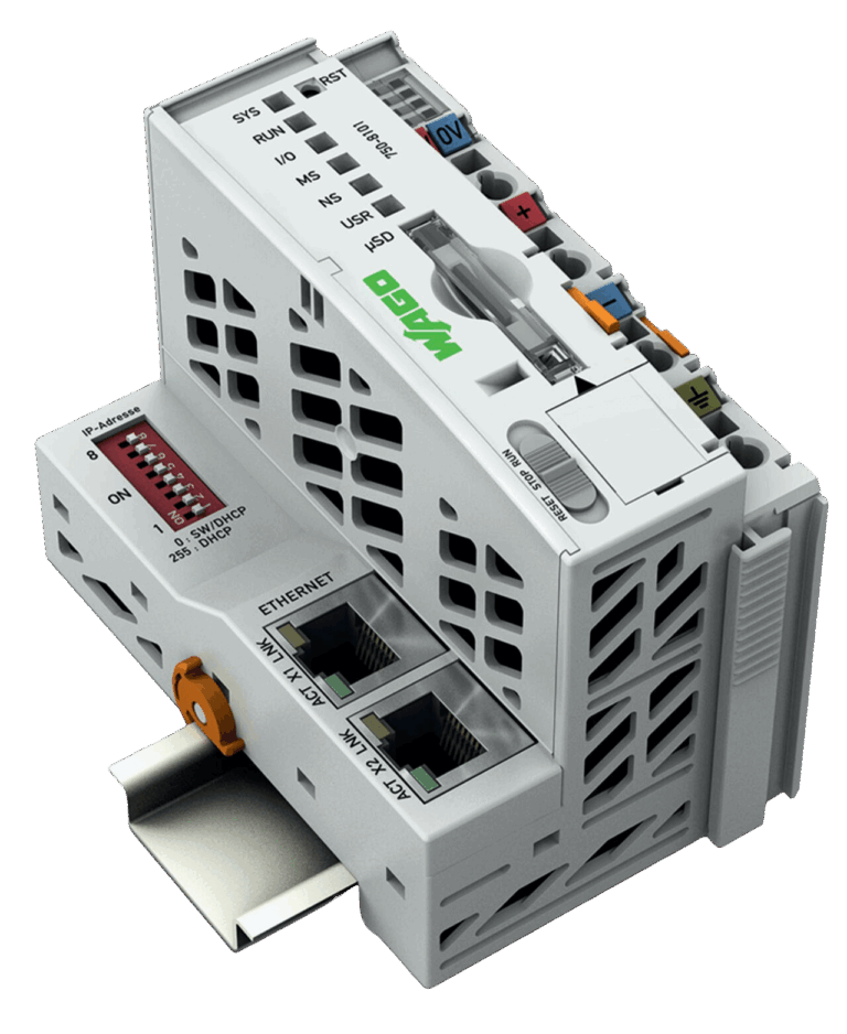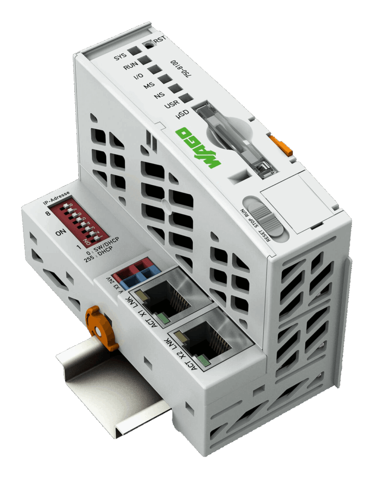 Der Controller PFC100 ist eine kompakte Steuerung an dem modularen WAGO I/O System. Neben den Netzwerk- und Feldbusschnittstellen unterstützt er digitale und analoge Module sowie Sondermodule der Serien 750/753.