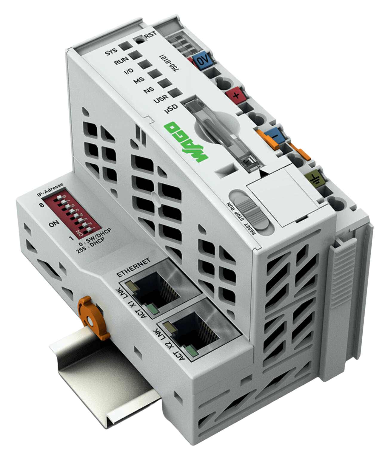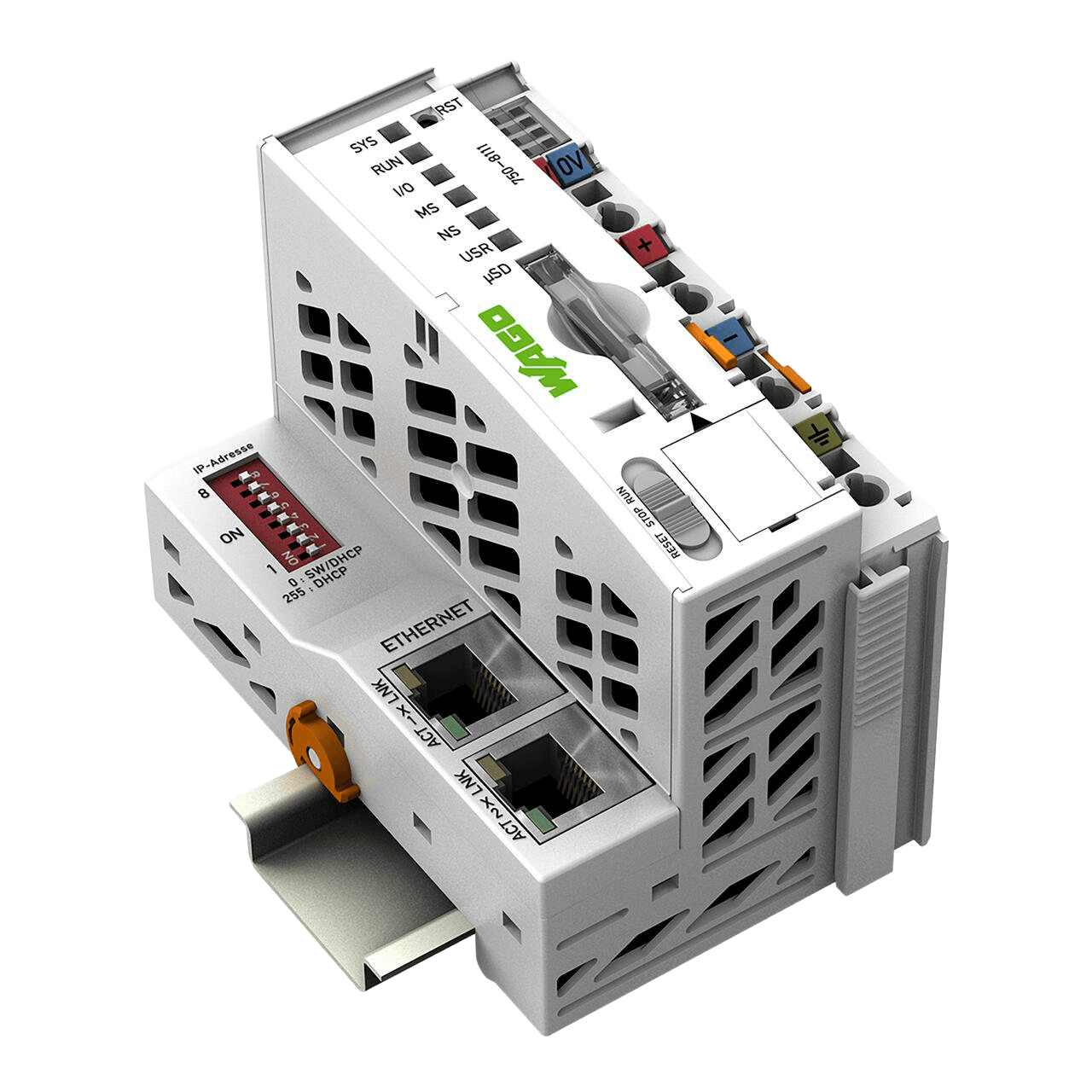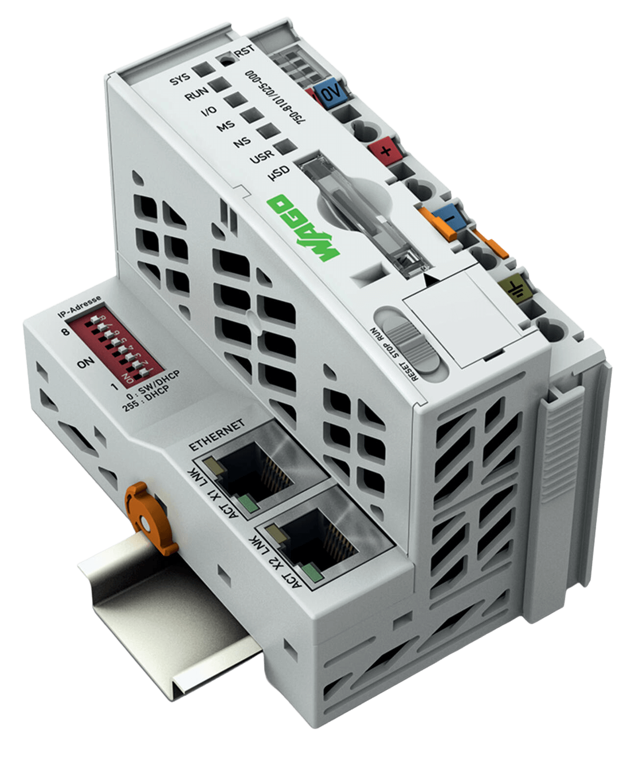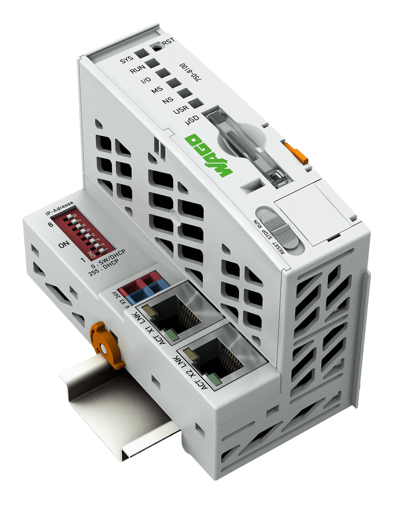 Der Controller PFC100 ist eine kompakte Steuerung an dem modularen WAGO I/O System. Neben den Netzwerk- und Feldbusschnittstellen unterstützt er digitale und analoge Module sowie Sondermodule der Serien 750/753.